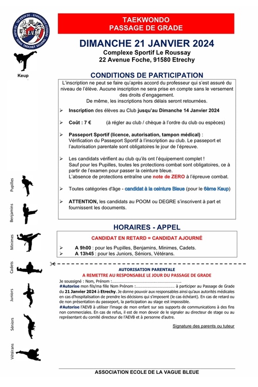 candidat à la ceinture Bleue (pour le 6ème Keup)